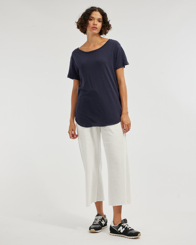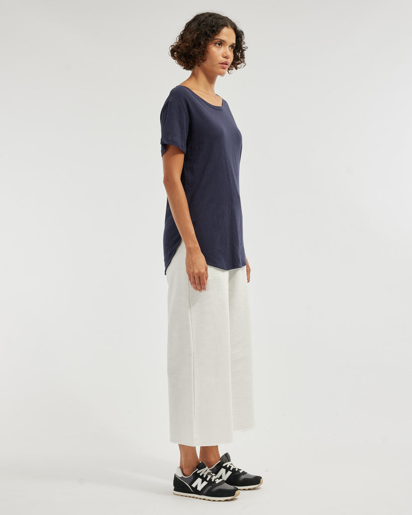 The Kie Rounded Hem Tee is cut in an organic cotton, featuring an wide neckline, regular sleeves and rounded hem for a casual look.