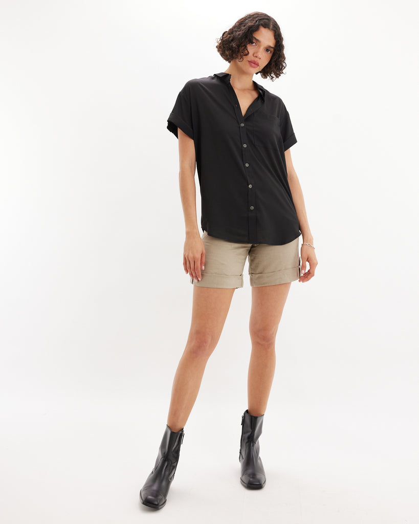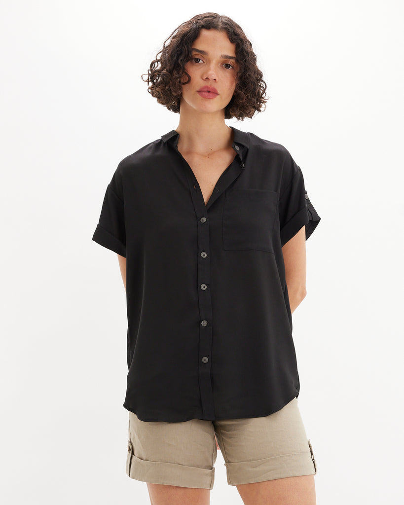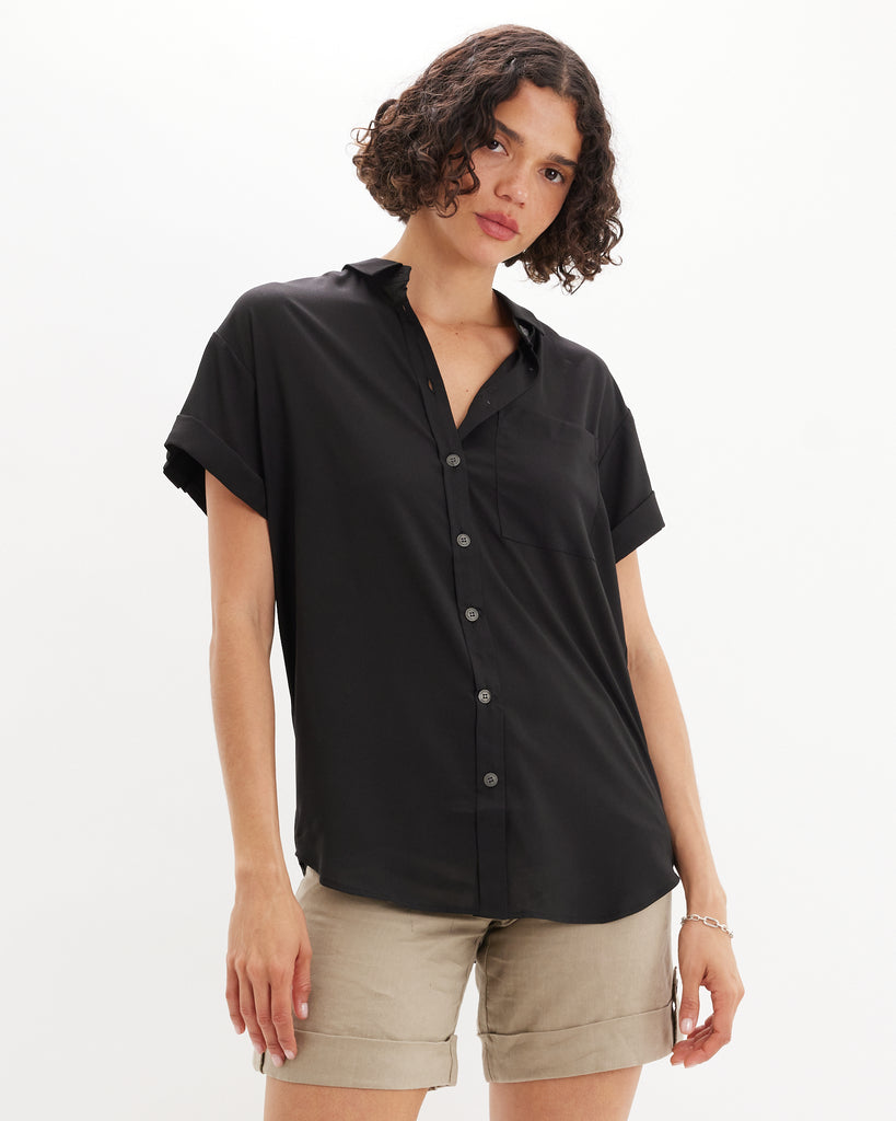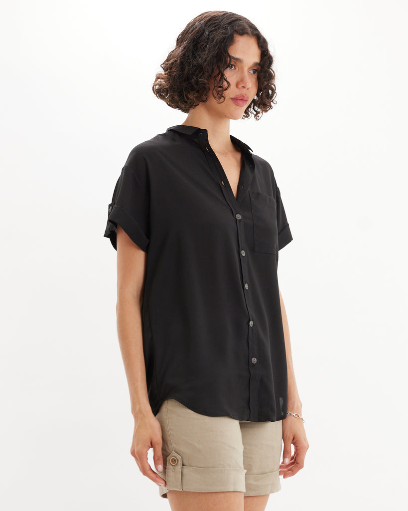 Muriel Buttond Short Sleeve Shirt - Black