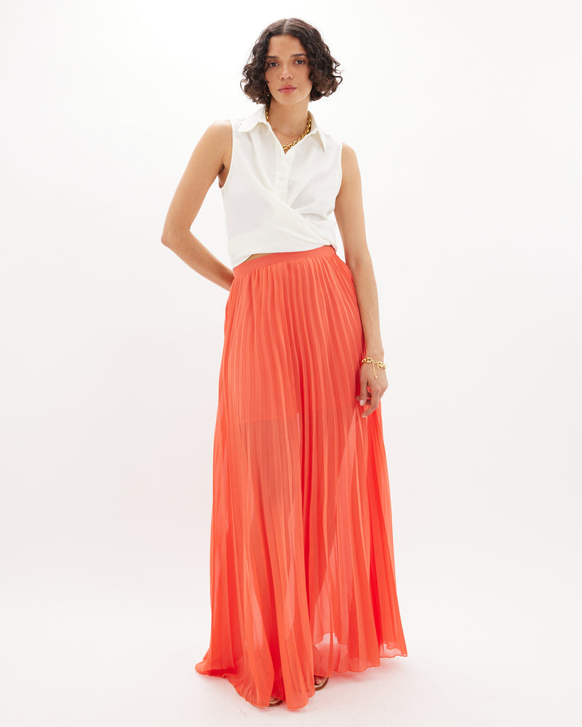 Leonore Pleated Maxi Skirt - Orange