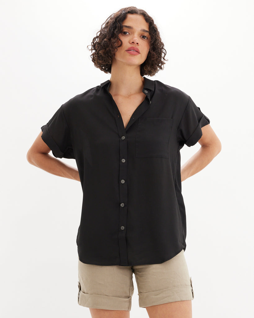 Muriel Buttond Short Sleeve Shirt - Black