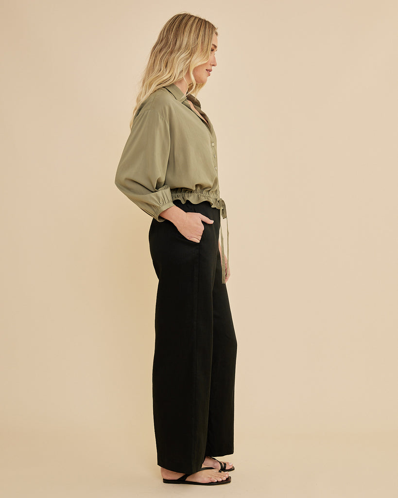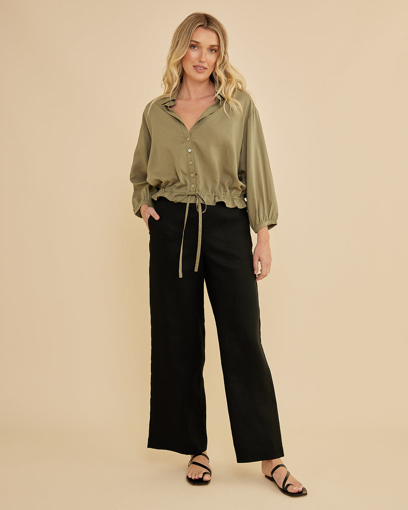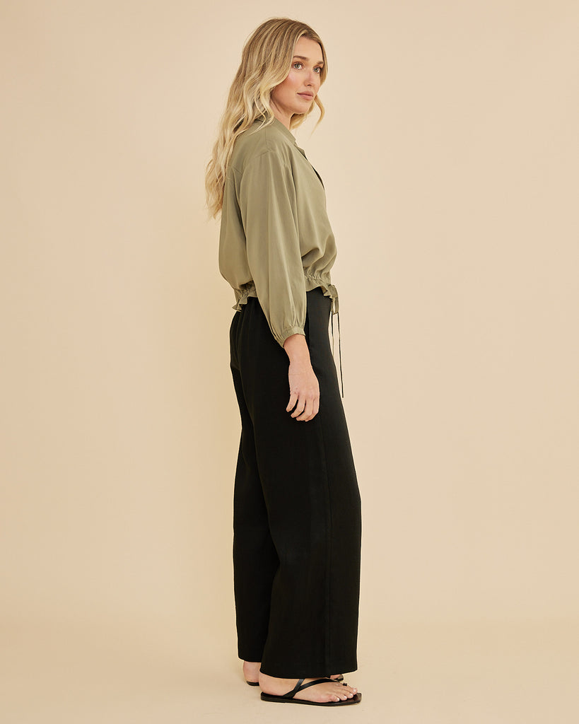 Introducing the Kate Long Sleeve Top – a refined piece that blends classic design with modern accents. Its cropped silhouette and adjustable drawstring hem add a touch of contemporary styling, while the collared neckline and long sleeves ensure a polished finish. Ideal for pairing with high-waisted separates for a balanced look.