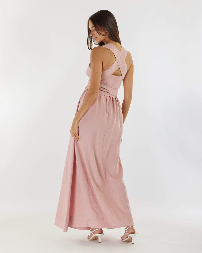 Cut in a pure linen fabrication, the Juliette Linen Maxi Dress will take you from sunset drinks straight to dinner. Featuring a light bustier style bodice, wrap construction neckline and flowing full skirt length, it's a romantic vision for summer dressing. Dual side pockets and back zip construction have been added for ease of wear. Wear yours with sandals or heels.