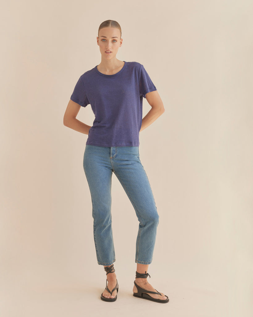 Coogee Linen Crew Neck Tee - Ocean