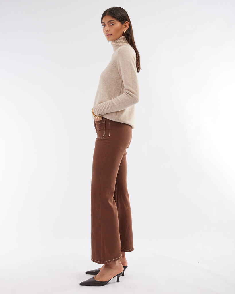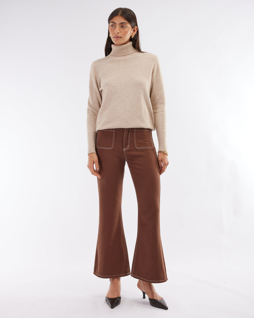 The Hexham Drill Pant echoes the classic 70s era with its timeless and distinct silhouette. Crafted from a cotton drill fabrication, this pant is recognised for its flared hem, contrast stitching, dual side and back pockets. Effortlessly take this piece from day to night by pairing it with your favourite boot.