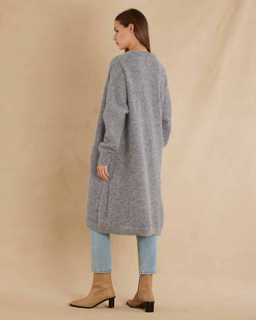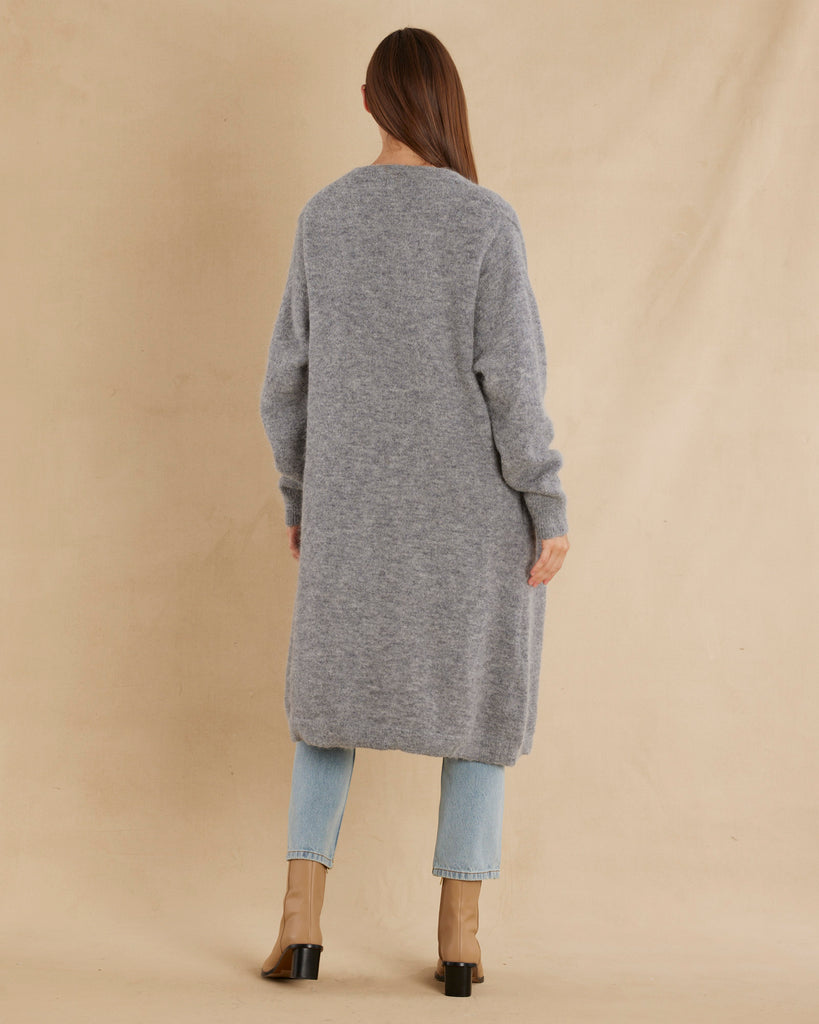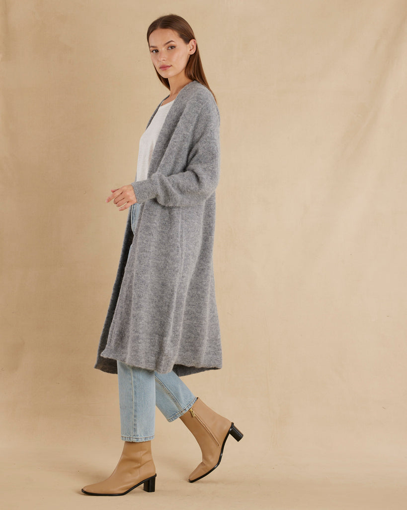 Wrap yourself in luxury with our Thea Alpaca Cardigan. Crafted from the finest alpaca wool + sheep wool blend, this cardigan is incredibly soft, warm, and lightweight, making it perfect for layering. The longline silhouette and open front design create a relaxed and effortless look. The unique texture of the alpaca wool gives it a modern and chic edge, while the neutral tones make it easy to style with any outfit. Whether you're lounging at home or heading out, this cardigan is a must-have for the fashion-conscious individual who values both style and comfort.