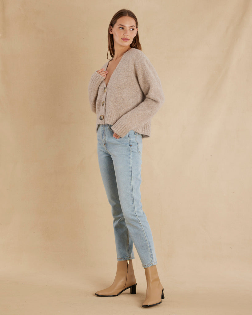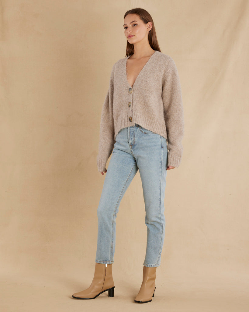 Elea Cropped Alpaca Cardigan - Oatmeal