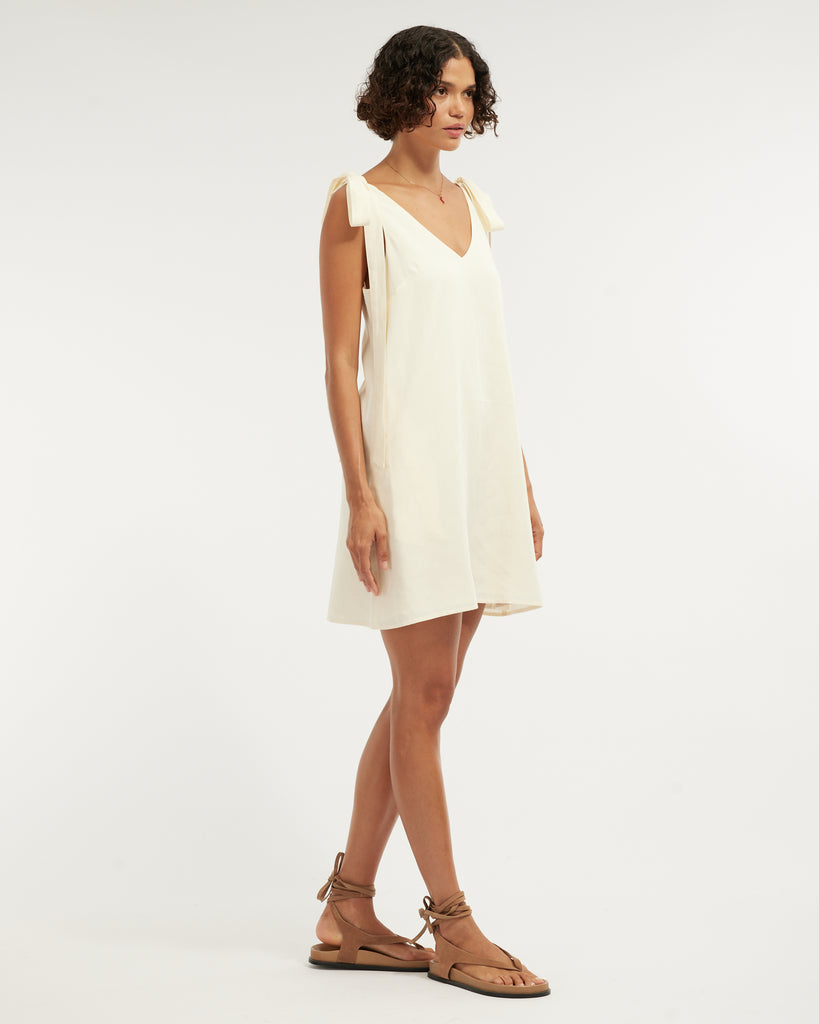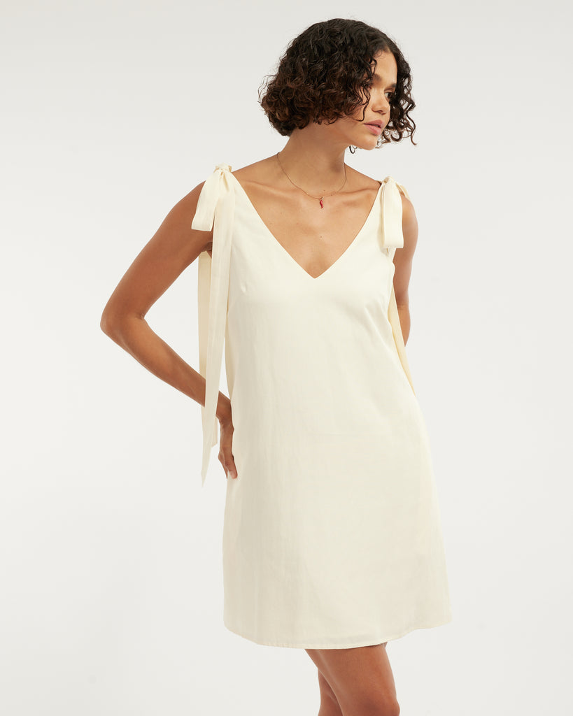 Frankie Shoulder Tie Mini Dress - Cream