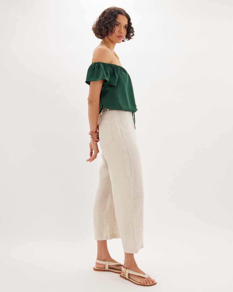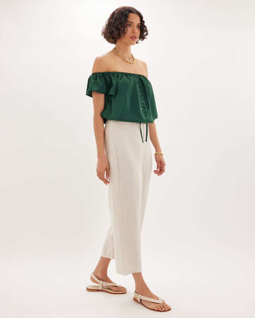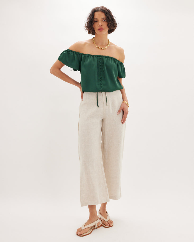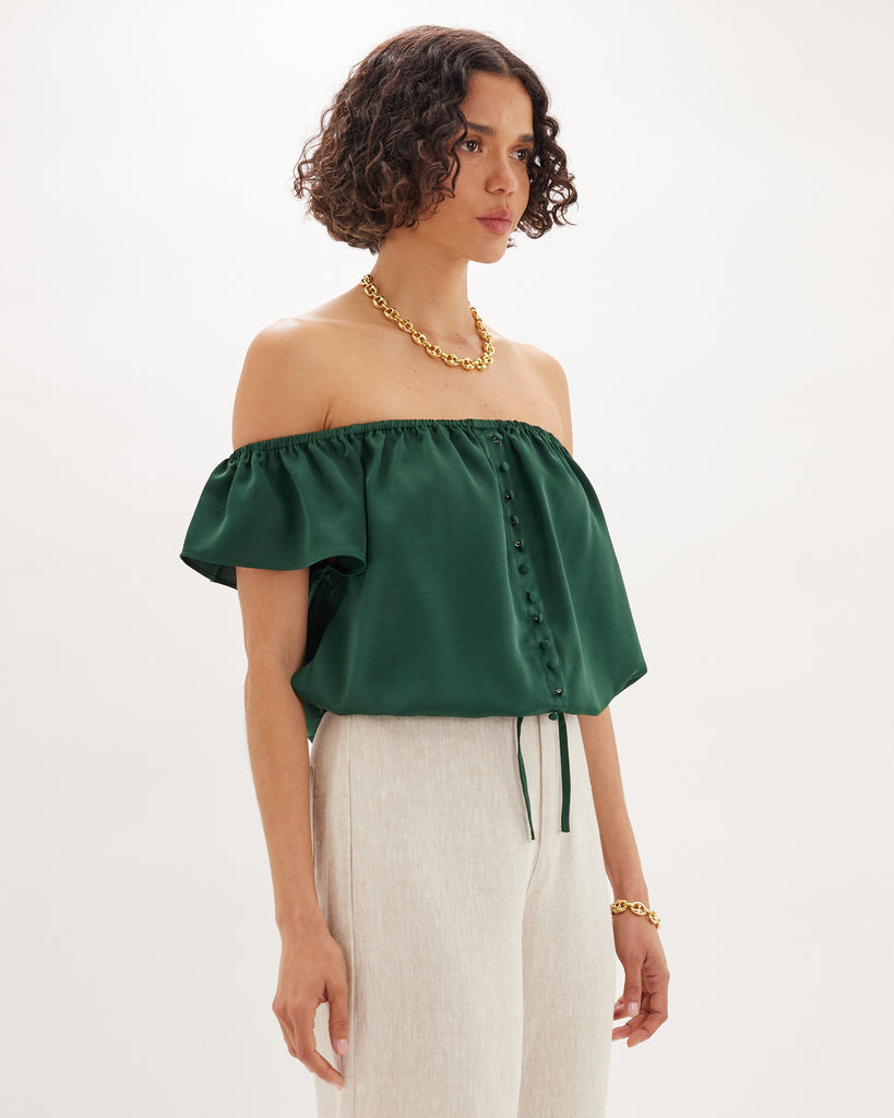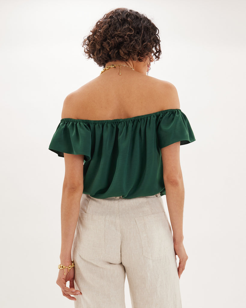 Regan Off Shoulder Crop Top - Green Forest