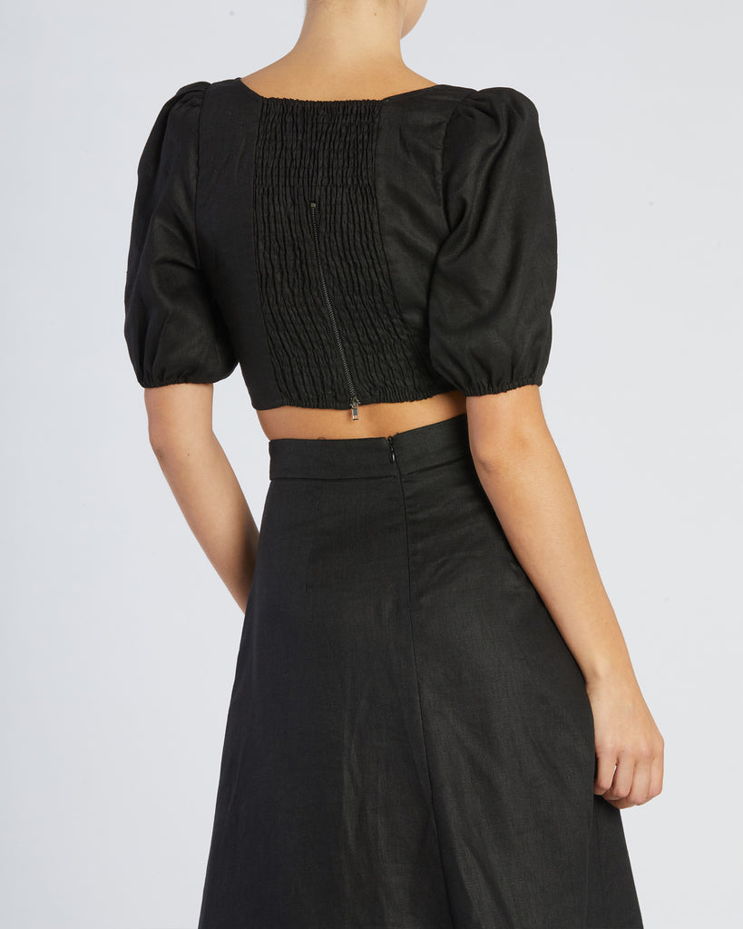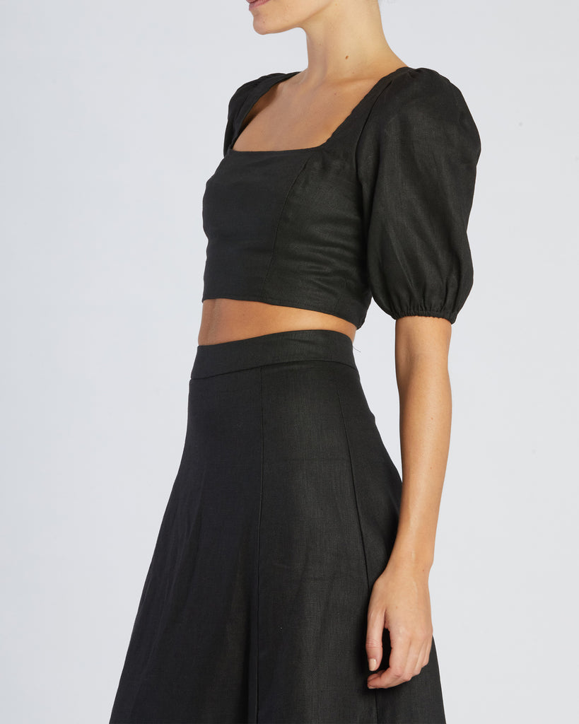 Violetta Linen Crop Top - Black