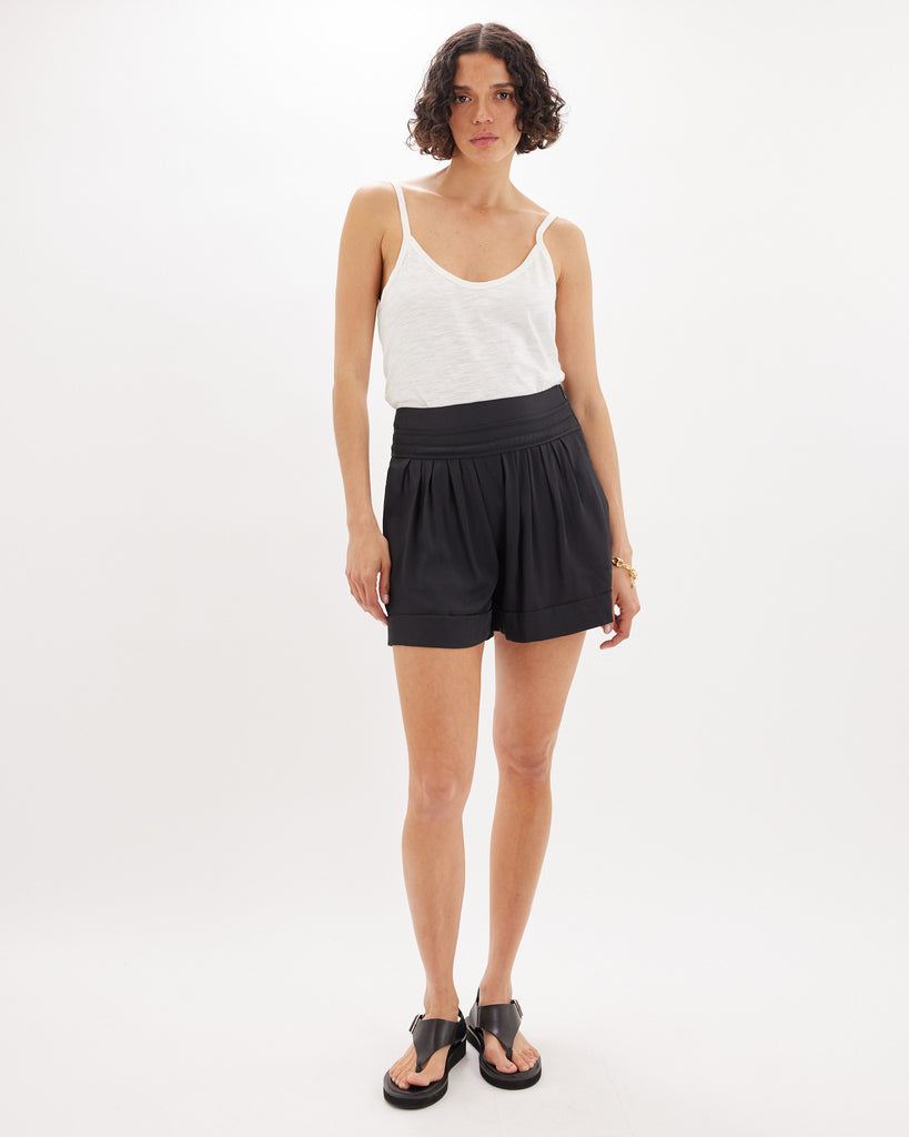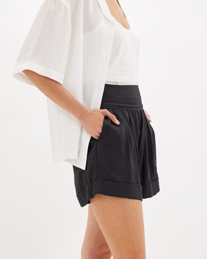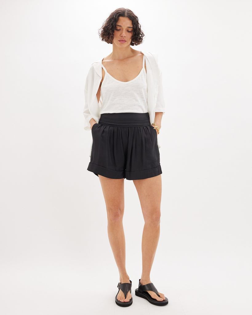 The Desiree Pleated Short is a refined take on everyday tailoring. Crafted from a breathable cotton blend, this piece features soft pleats through the front, a wide waistband for definition, and turned cuffs that complete the polished look.
