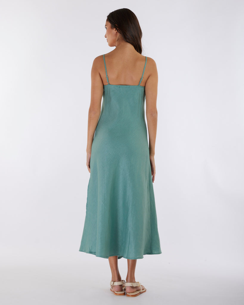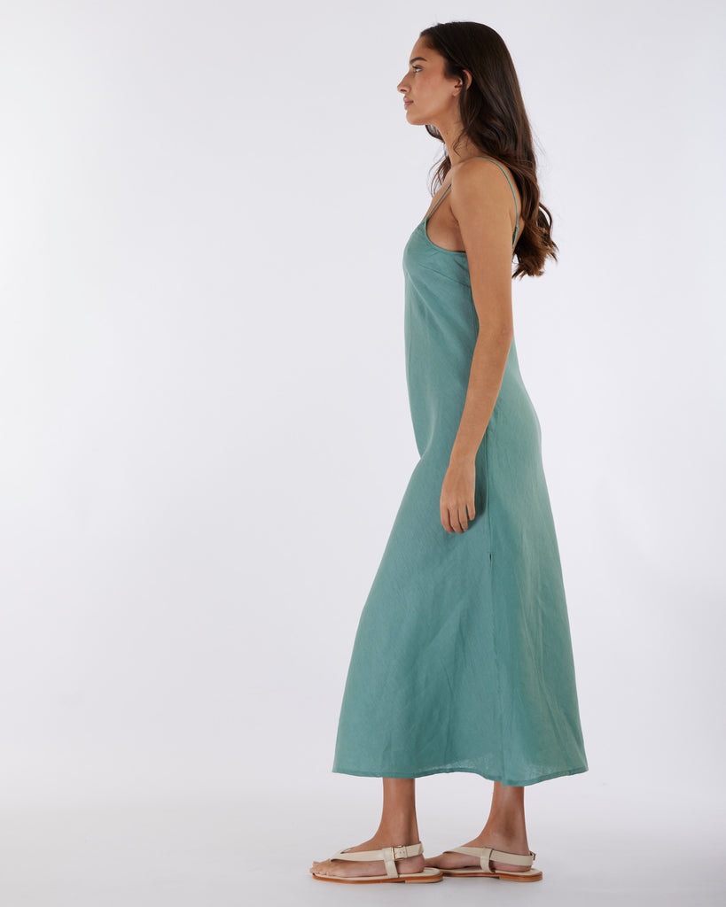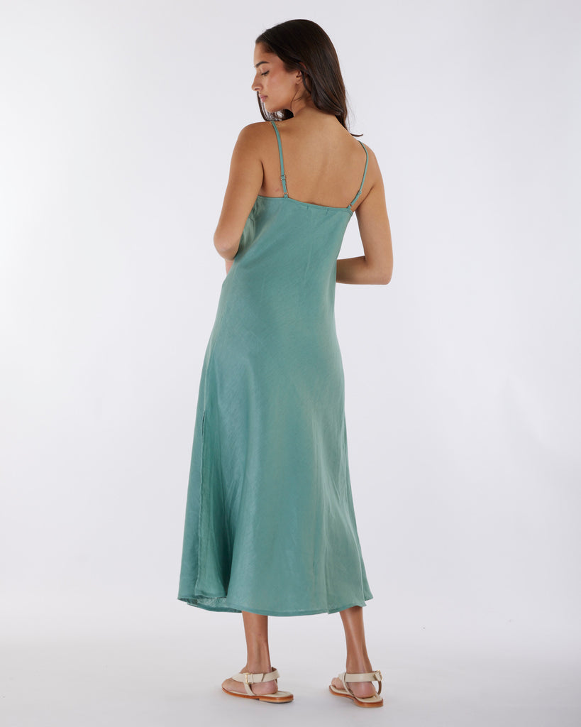The Evangeline Linen Dress is the ultimate loungewear essential for this holiday season. Made from linen fabrication, this linen maxi dress features a side split, V cut neckline, adjustable straps and a self-covered drawstring bag designed for the perfect gift.
