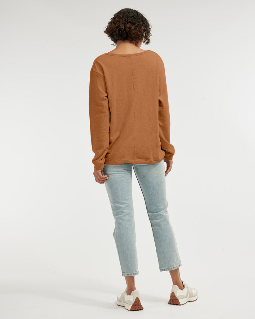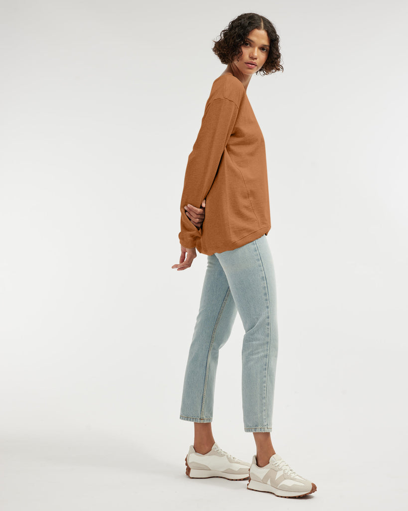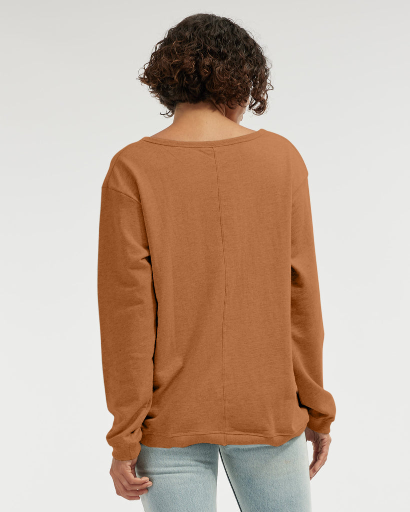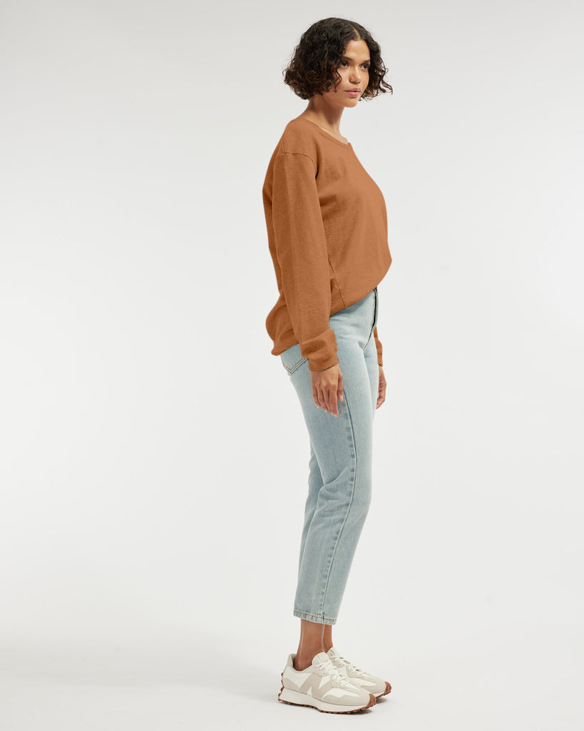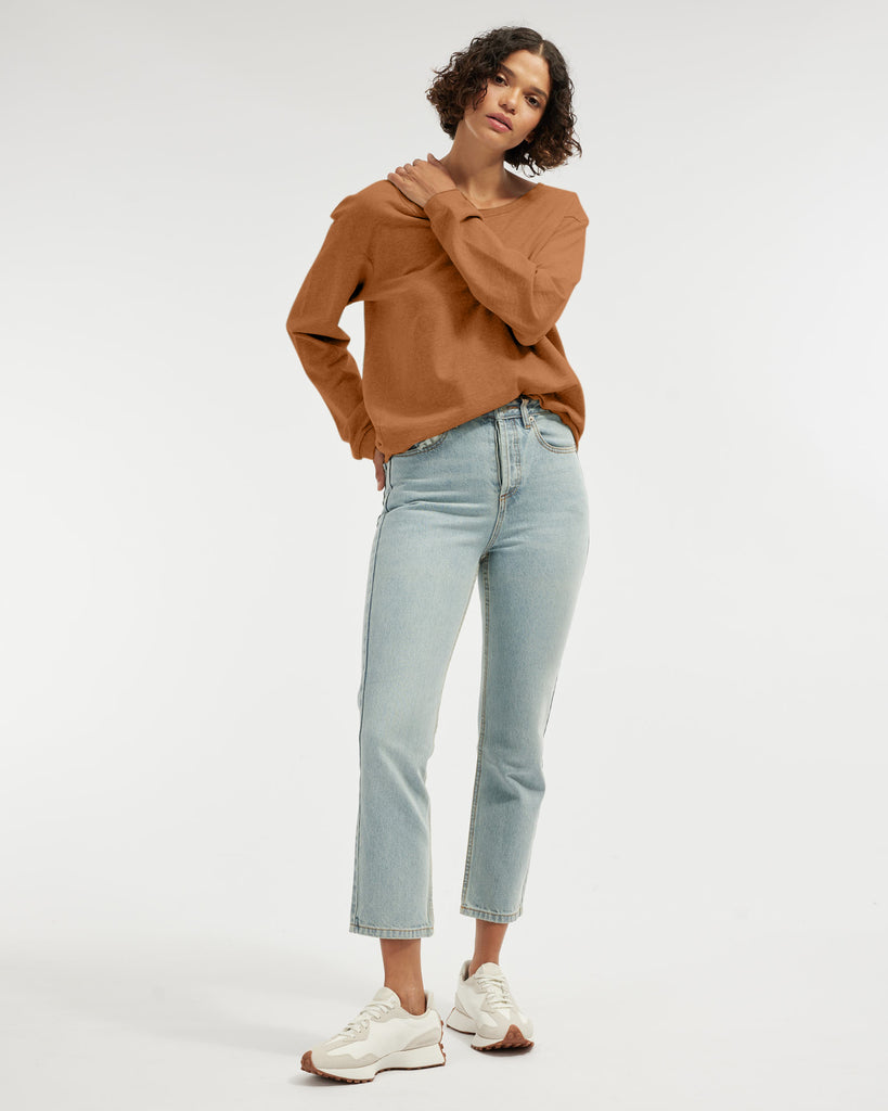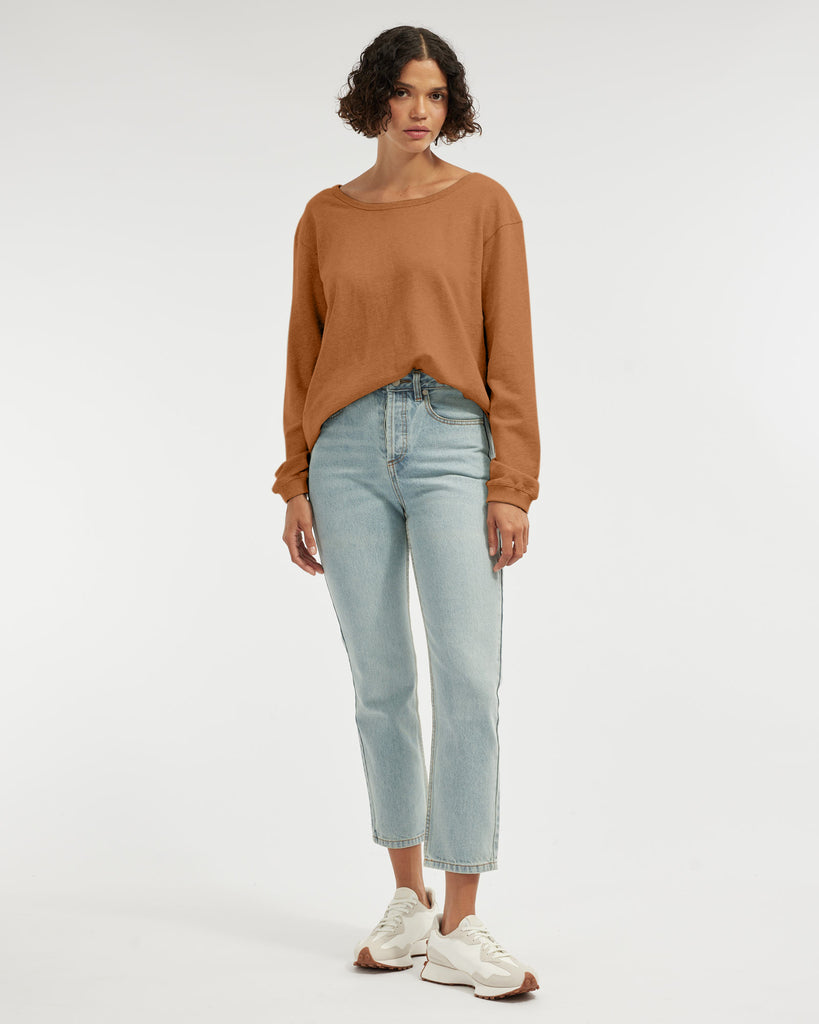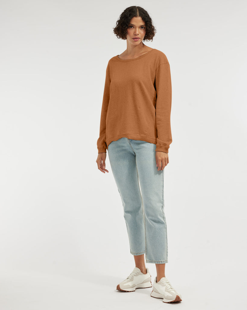 The Jessie Crew Neck Sweater is the ultimate easy pop-over any casual outfit. It offers a wide, open neckline and ribbed detailing at hem and cuffs. Cut out of 100% organic cotton.