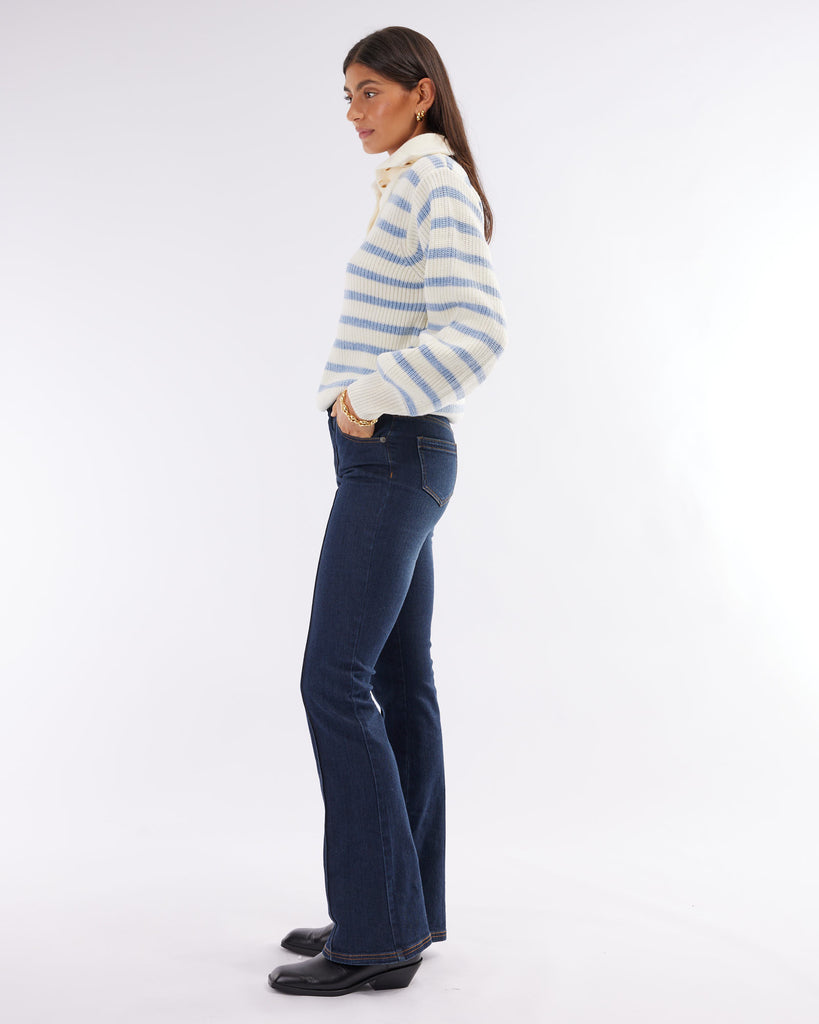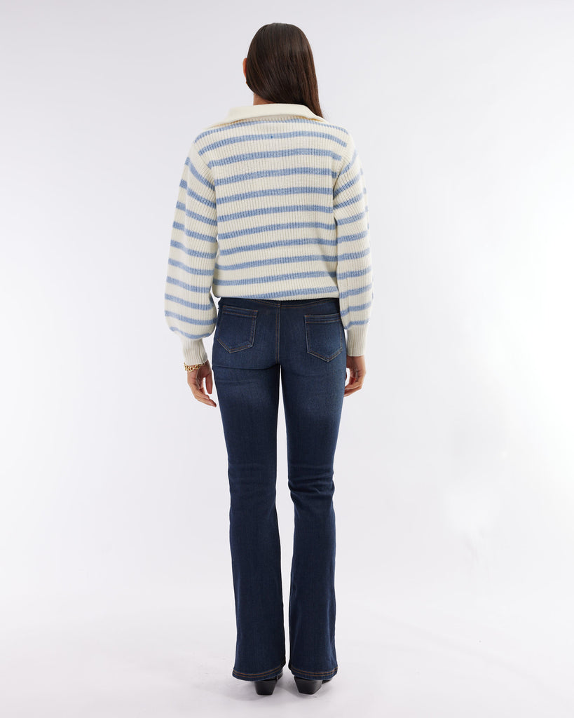Introducing the Lina Striped Knit, a chic blend of comfort and elegance. Crafted from premium wool blend fabrication, this sweater features classic stripes on a timeless cream canvas. The unique collar design and refined button details elevate its style, making it a perfect choice for both casual and sophisticated occasions.