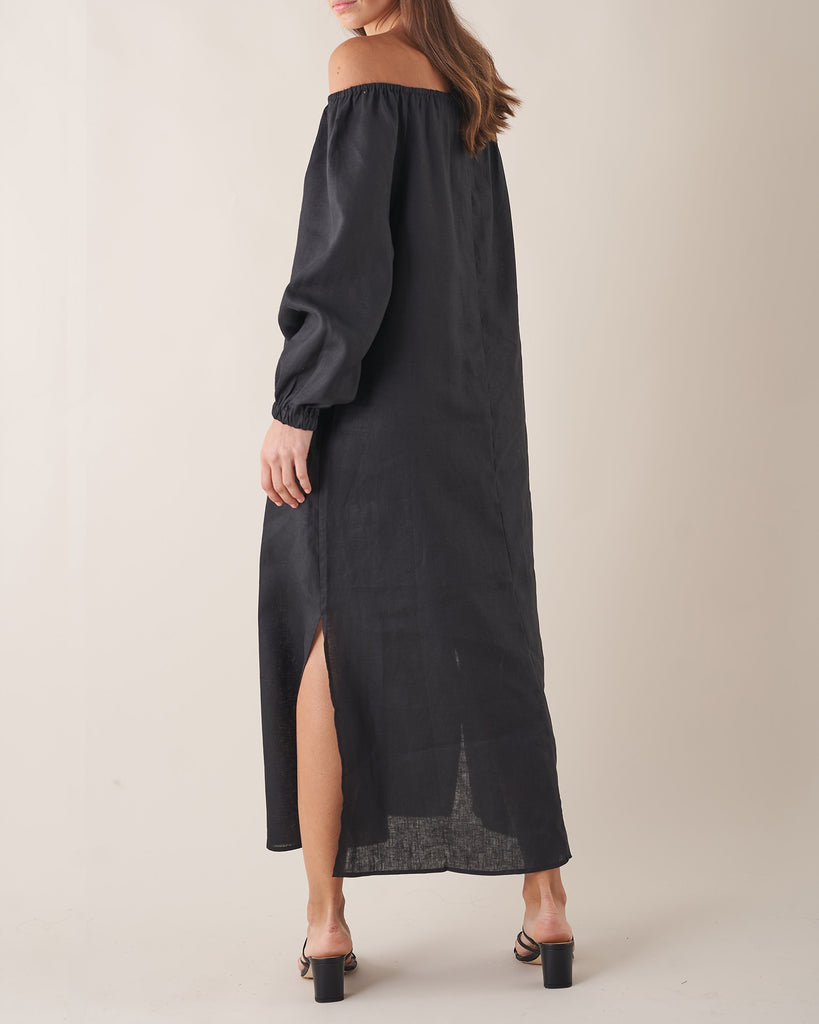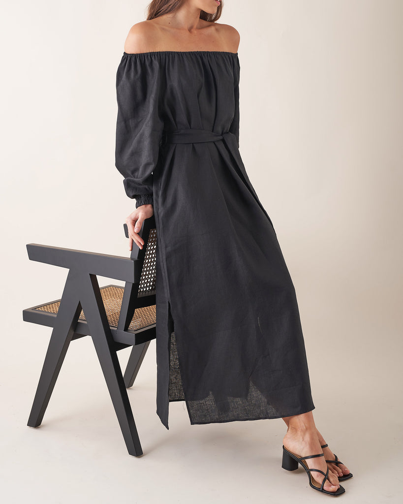 Tala Linen Maxi Dress - Black