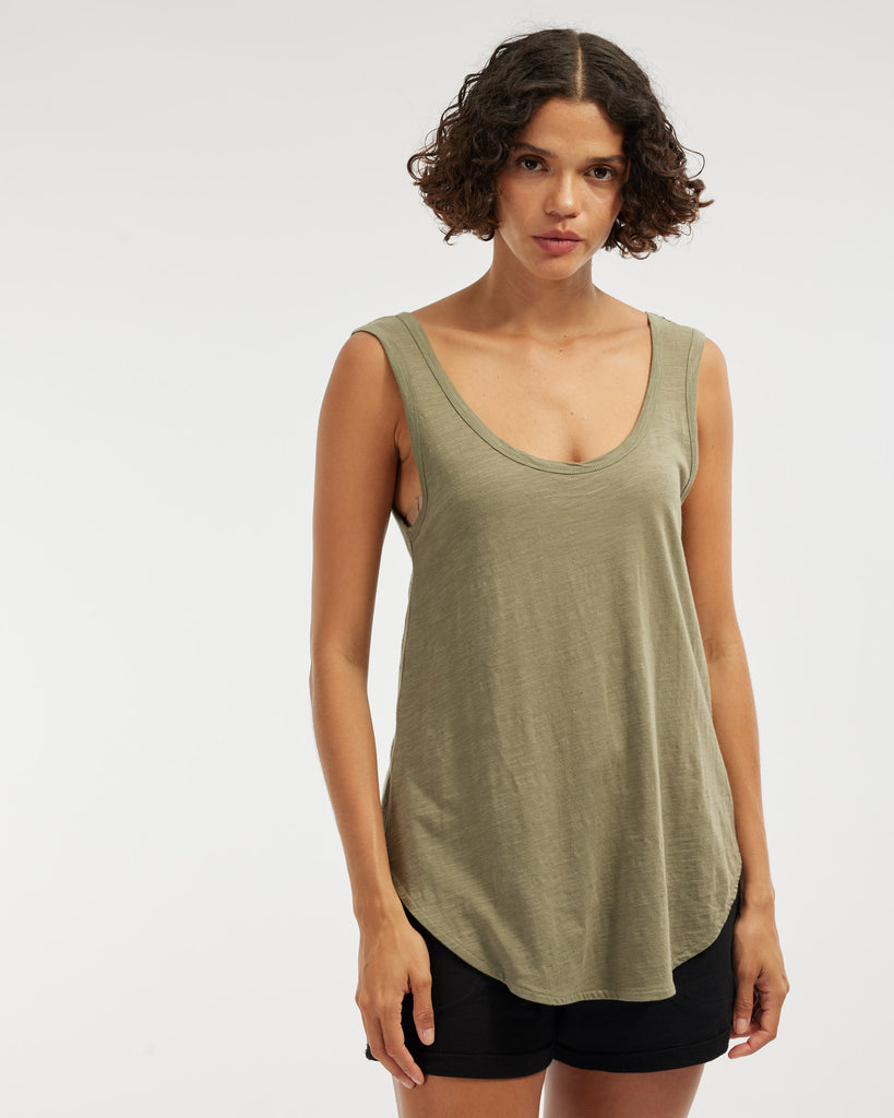 Bailey Rounded Hem Tank - Khaki