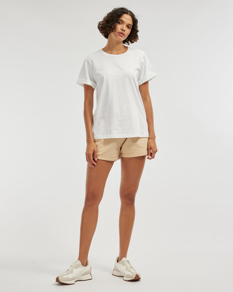 A classic crew-neck tee with rolled cuffs cut in a smooth, soft 100% cotton jersey, the Cruz is perfect for refined daily dressing. The hand-rolled finish adds a casual, intentional detail to this everyday staple while maintaining a clean silhouette through the body.