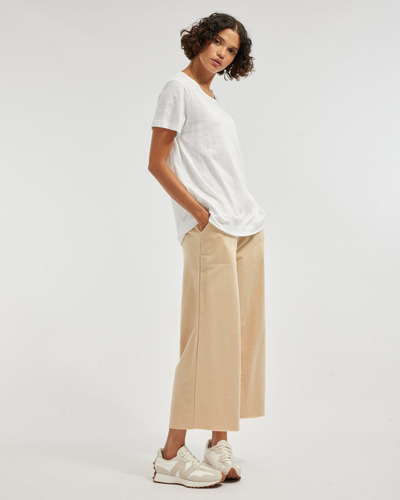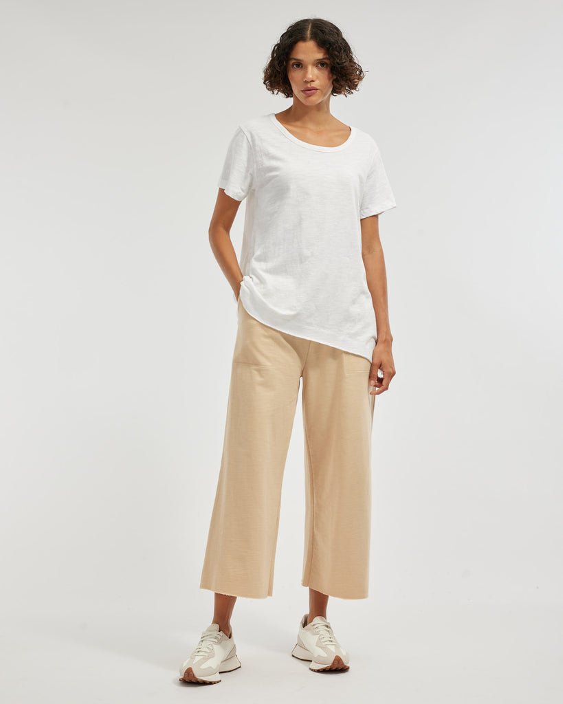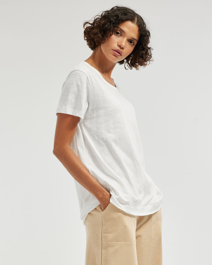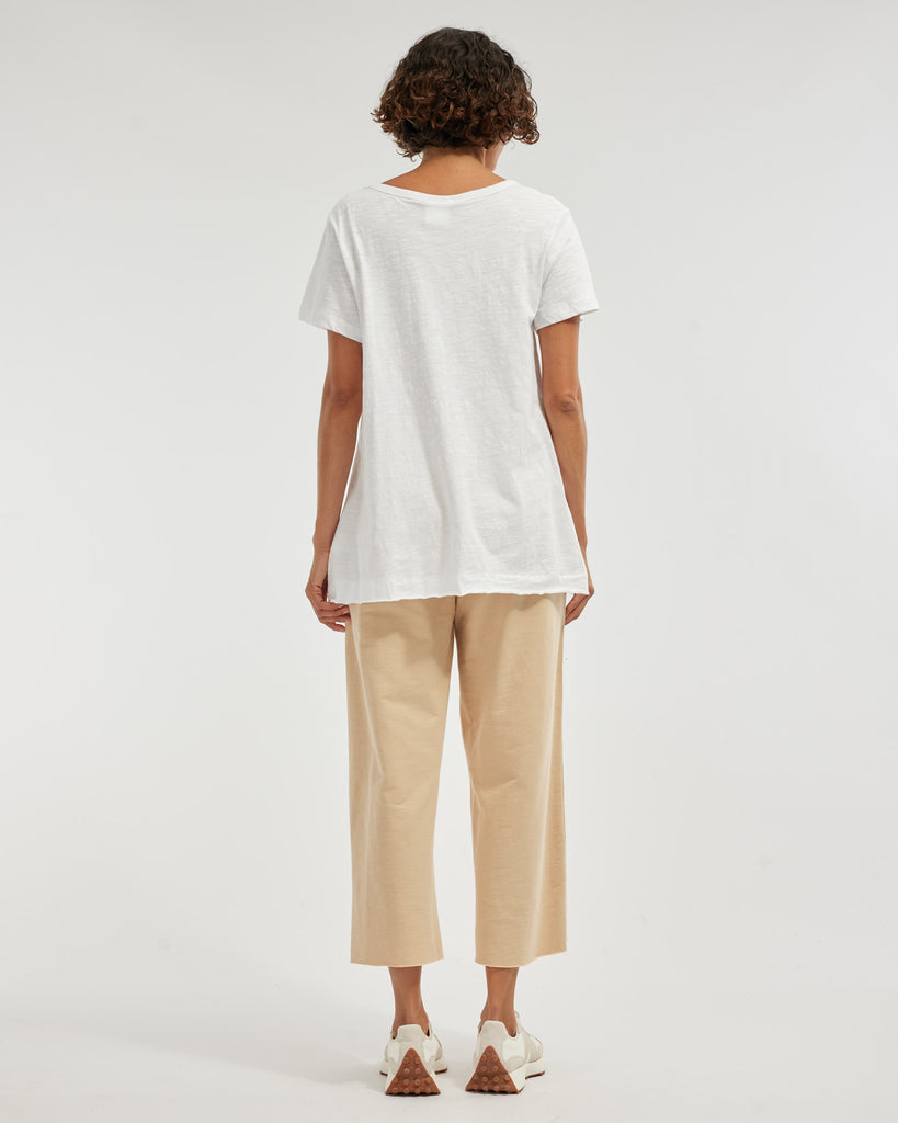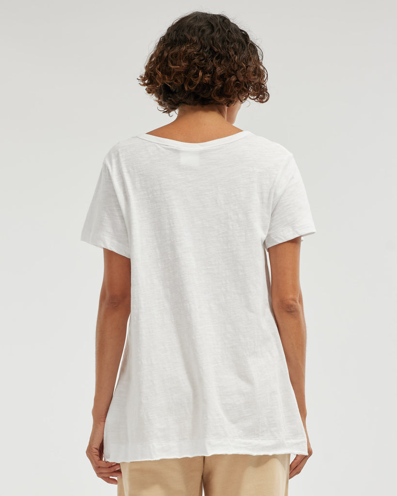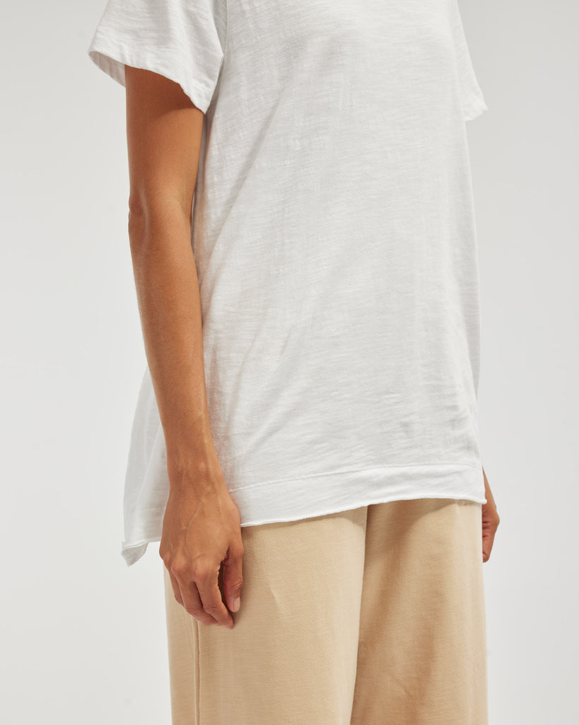 The Diana Longline Tee is a loose-fitting crew neck t-shirt featuring a double faced raw hemline, cut in a super soft slubbed midweight organic cotton jersey.