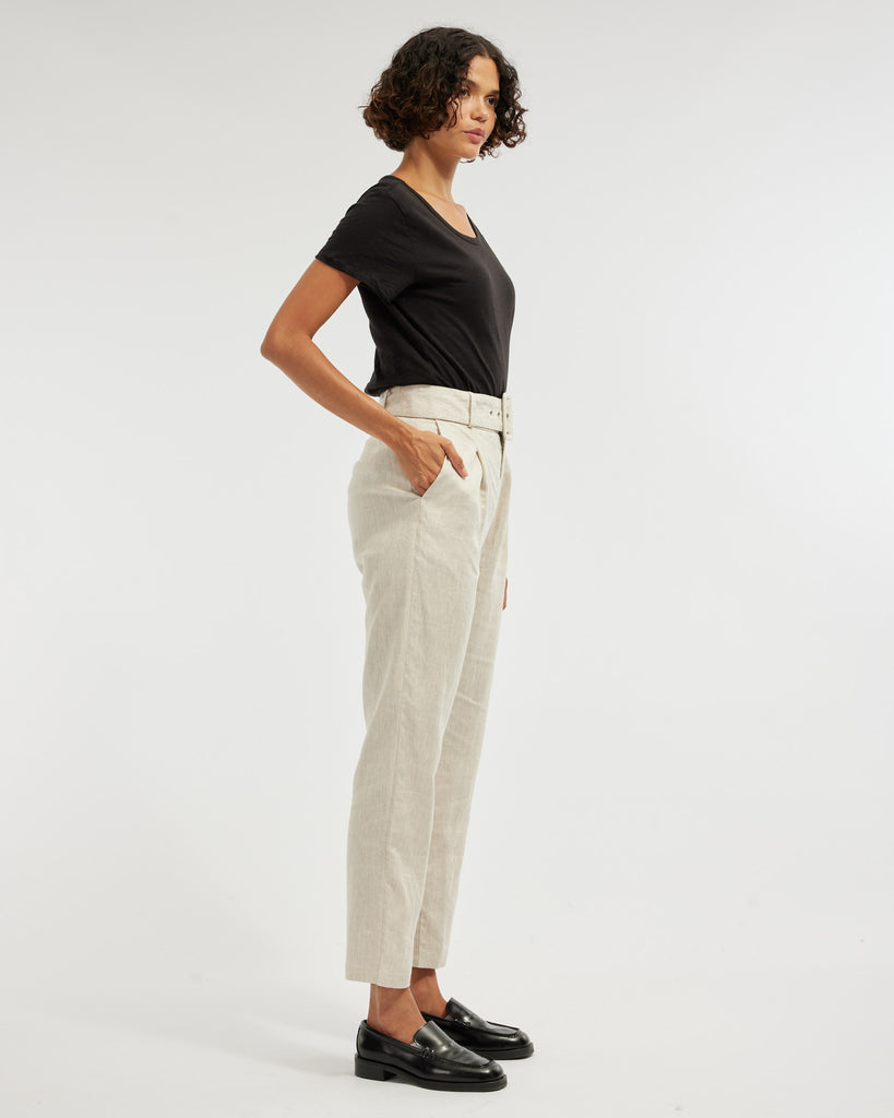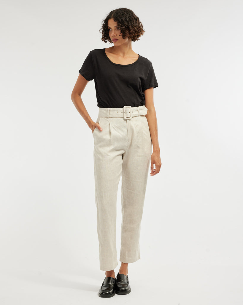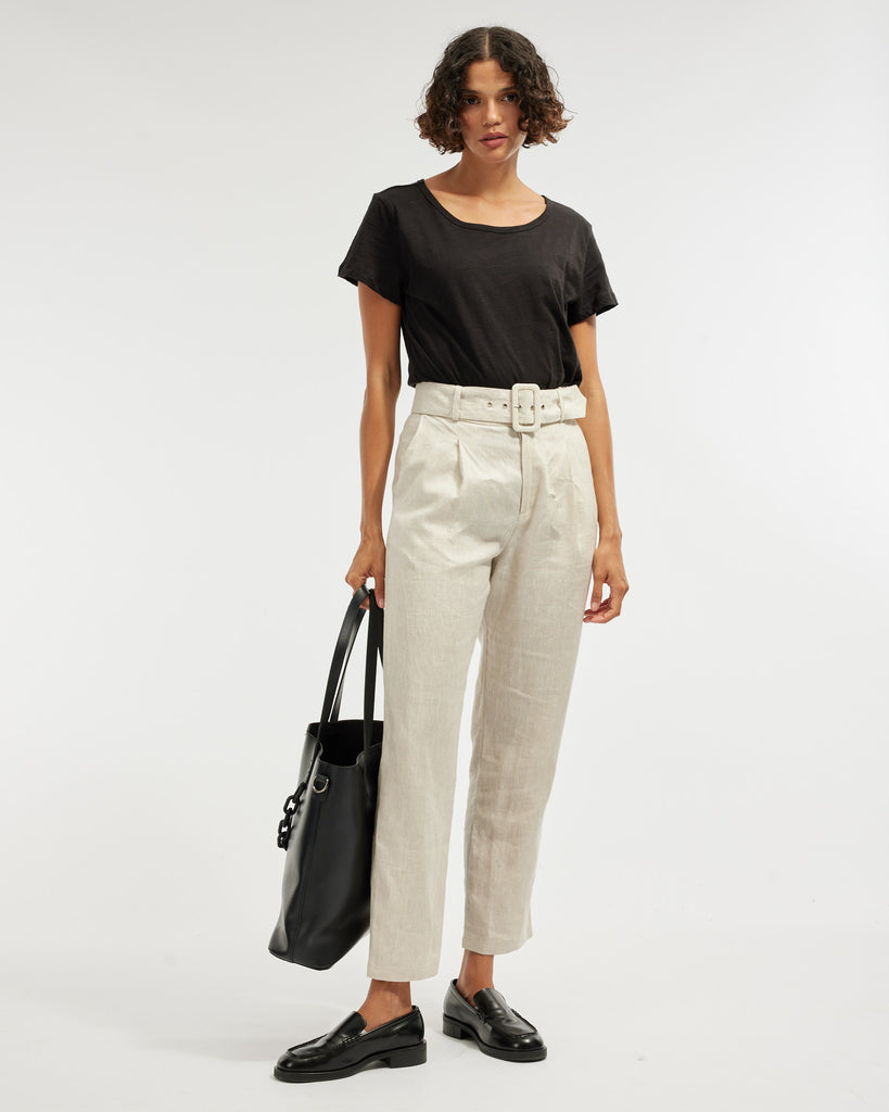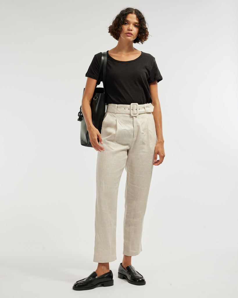 The Fallon Rounded Hem Tee is a casual wardrobe staple cut from soft slub cotton. It features a wide rounded neckline, short sleeves, and a relaxed fit. The curved, rounded hemline offers a flattering shape for everyday wear.