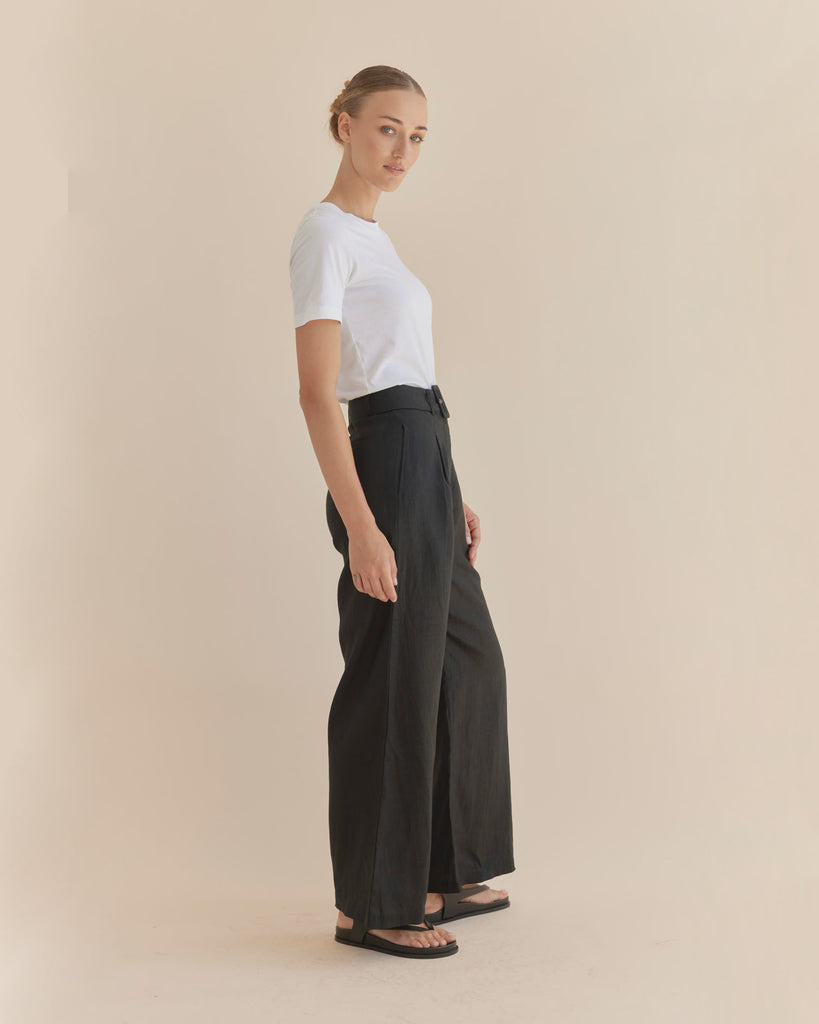 The Katrina Linen Pant offers a refined take on classic tailoring, made from 100% linen for a breezy, elegant fit. These high-waisted pants feature a wide-leg silhouette and come with a statement belt, creating a polished yet comfortable look ideal for any occasion.
