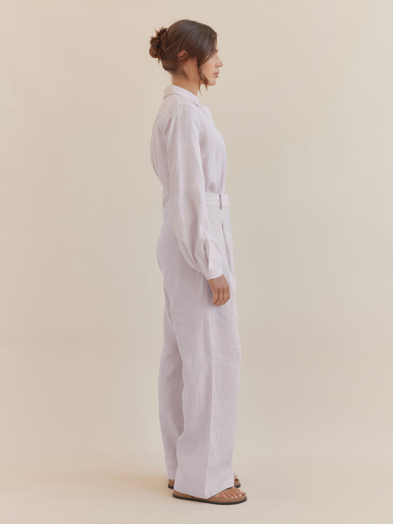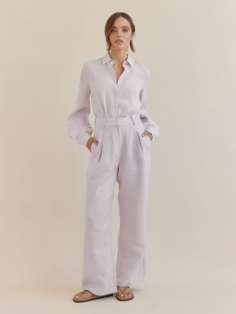 The Katrina Linen Pant offers a refined take on classic tailoring, made from linen blend fabrication for a breezy, elegant fit. These high-waisted pants feature a wide-leg silhouette and come with a statement belt, creating a polished yet comfortable look ideal for any occasion.