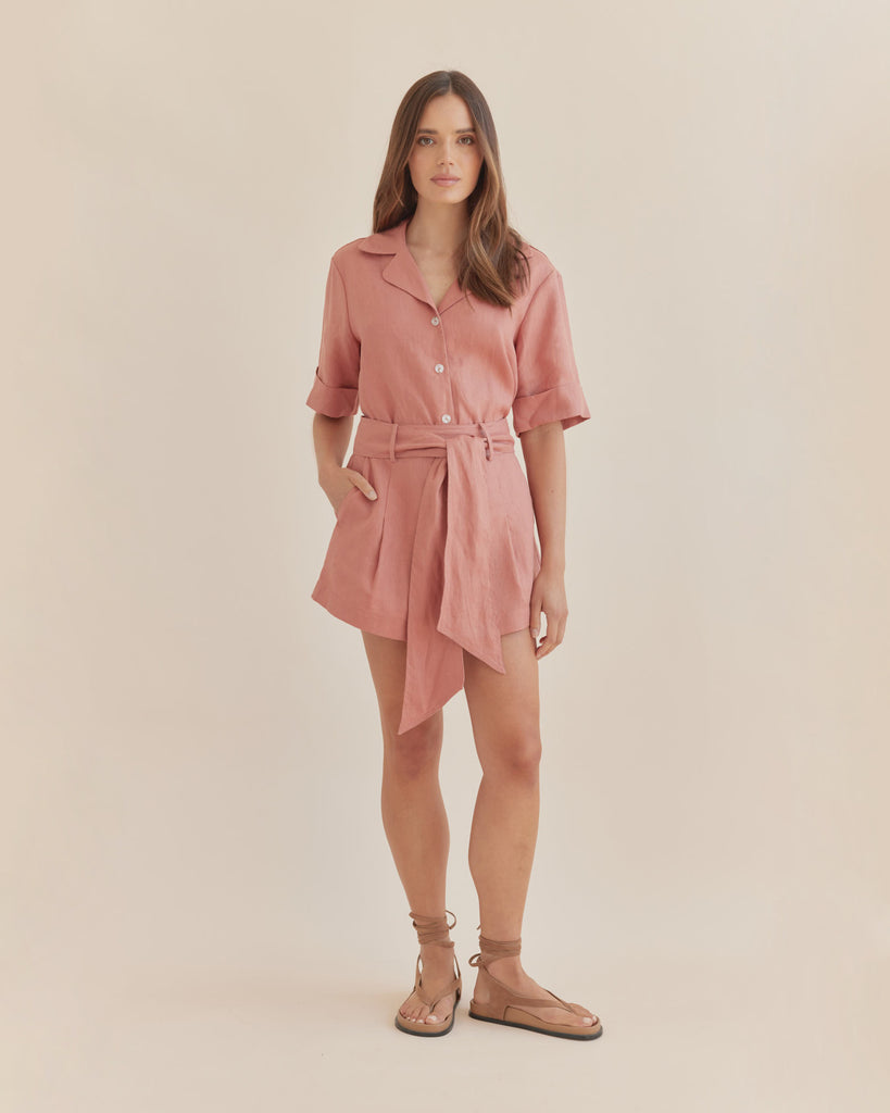 Maelle Belted Linen Short - Dusty Pink