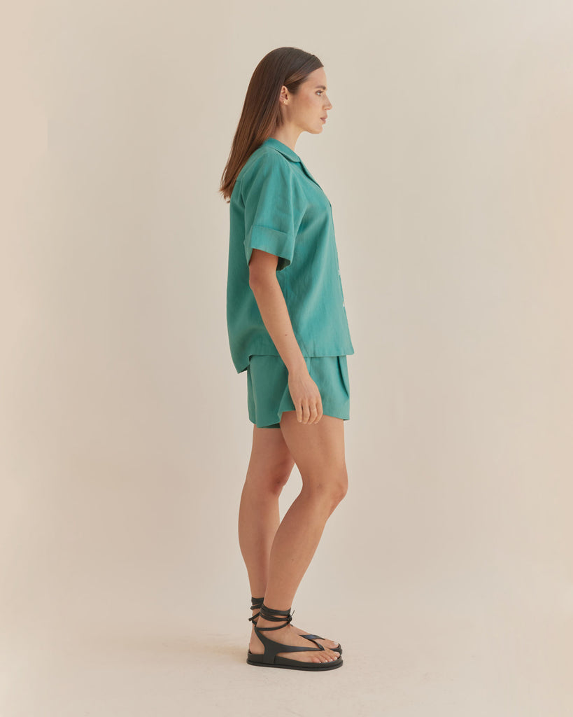 The Maelle Linen Shirt is a timeless wardrobe staple, made from 100% linen for a breathable and lightweight feel. This shirt features a relaxed fit with a classic collar and cuffed sleeves, offering a polished yet effortless look that pairs beautifully with any outfit.
