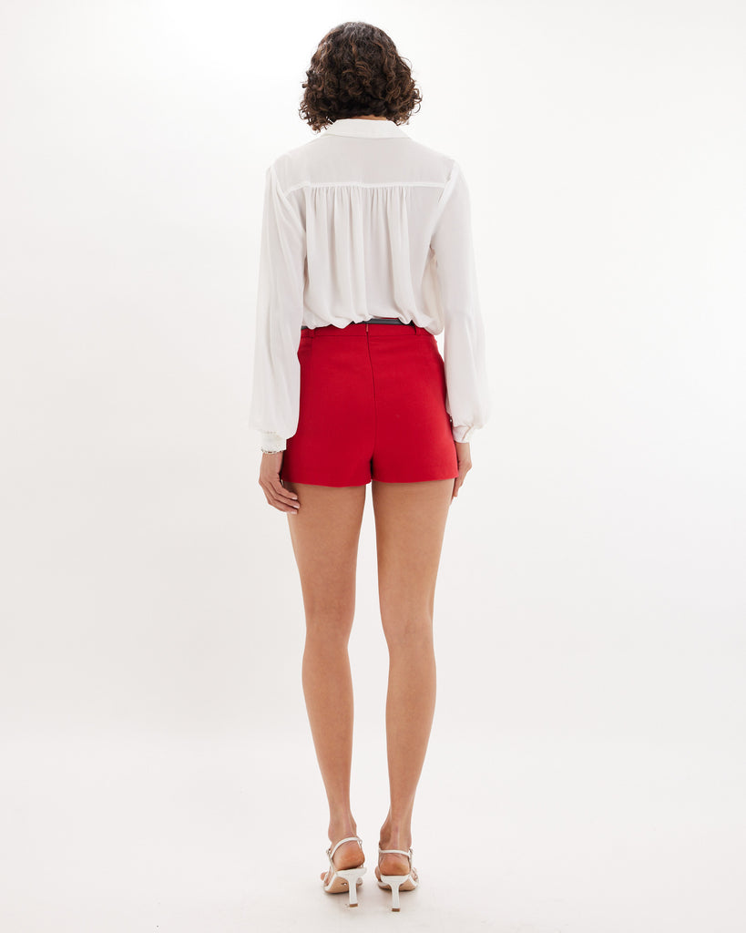 The Alba High Waist Mini Short is a polished yet playful staple. Designed with a flattering high-rise fit and front patch pockets, it combines structure with ease for day-to-night styling.