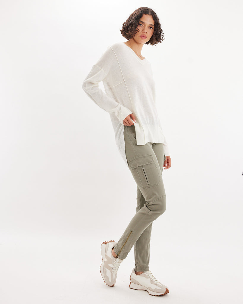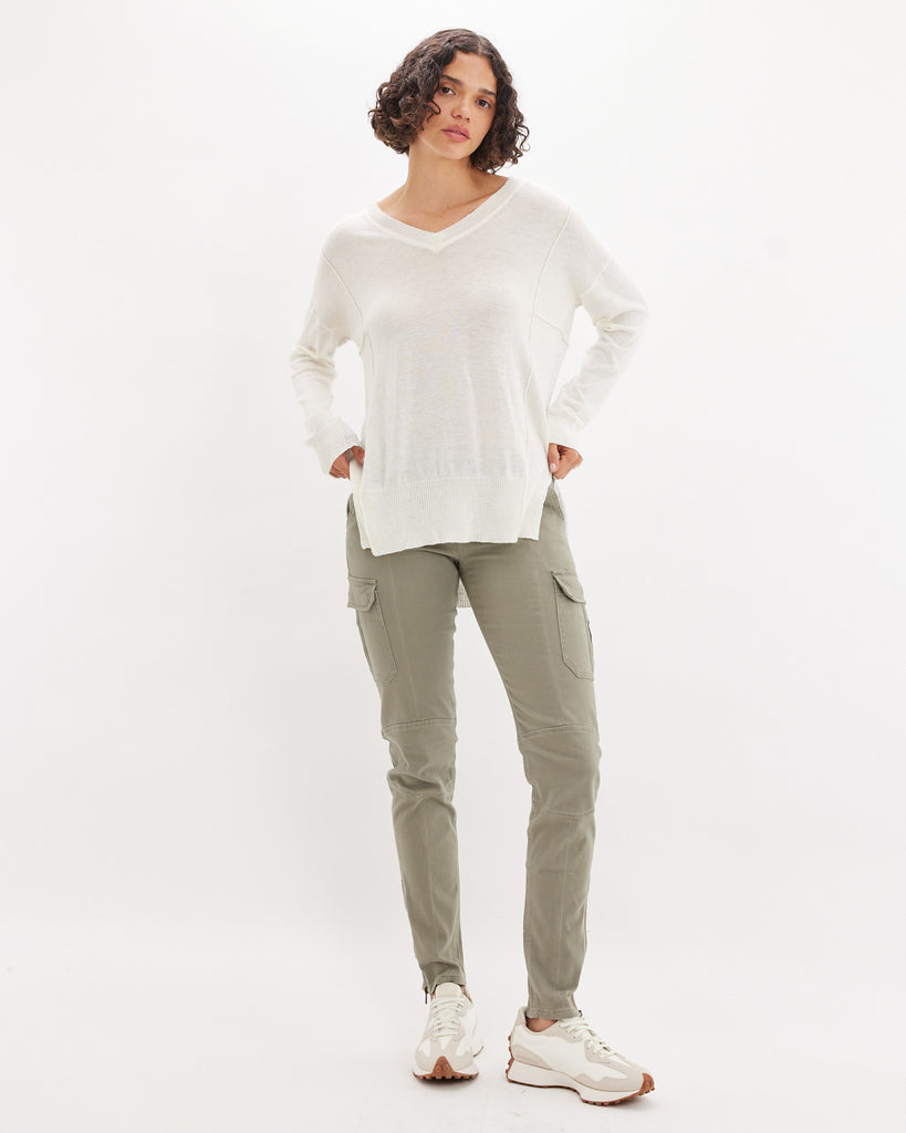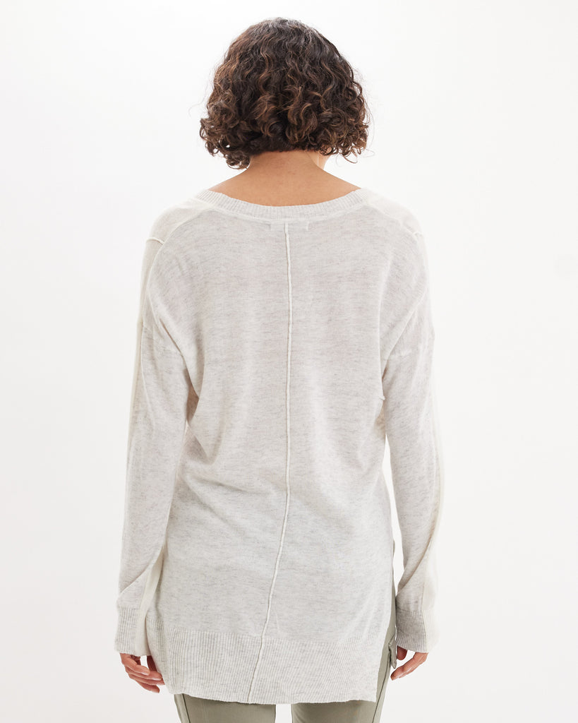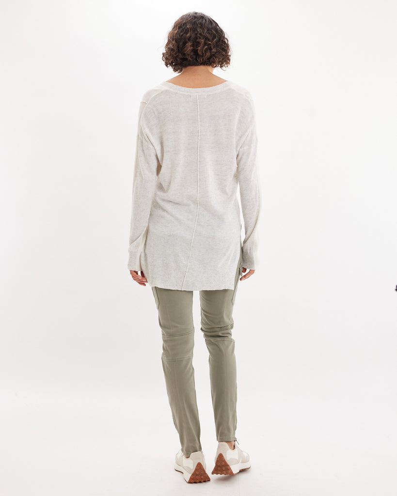 The Davina Contrast Knit Top combines comfort and modern design. Crafted from a soft, lightweight knit, it features a subtle two-tone contrast. The relaxed silhouette with a V-neckline and long sleeves makes it an effortless choice for layering or standalone wear.