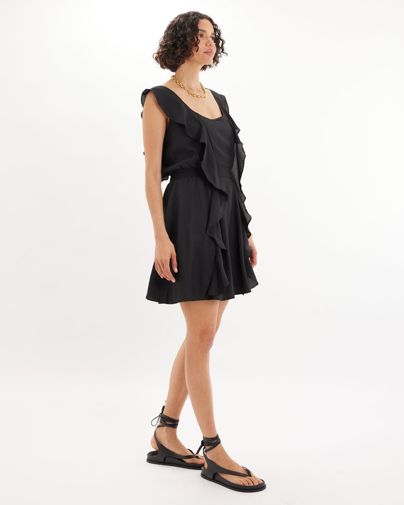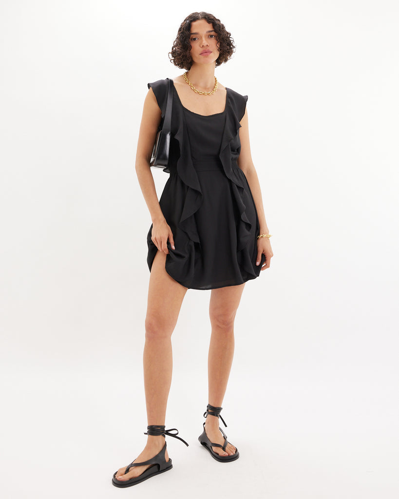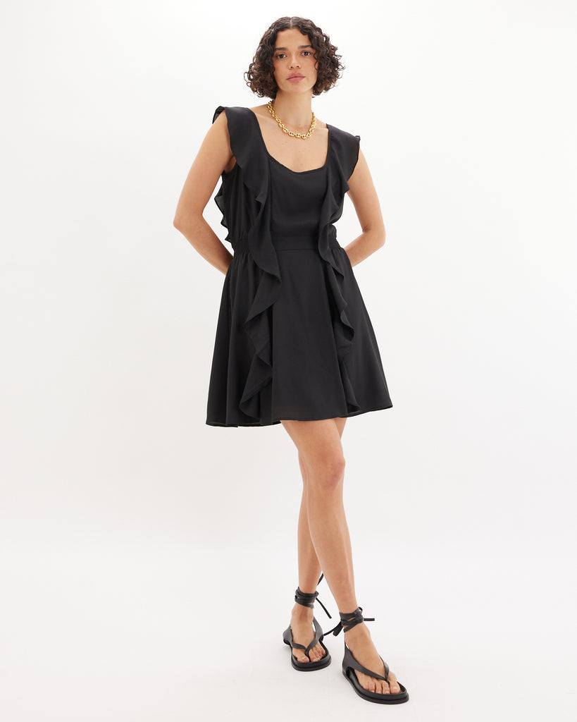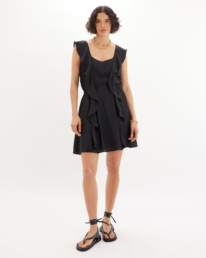 The Francis Ruffled Mini Dress is a playful fit-and-flare style with soft movement for day-to-evening wear. Framed with cascading ruffles along the neckline and bodice, it falls to a floaty mini skirt and is finished with an elasticated waist for comfortable shaping.