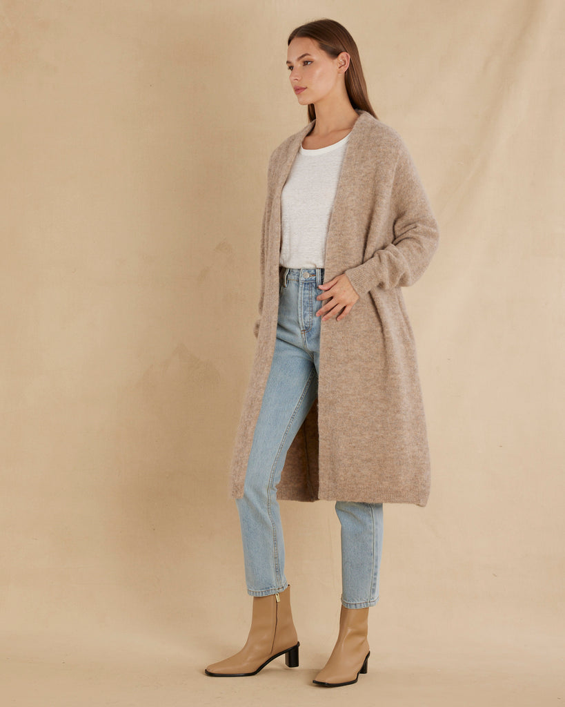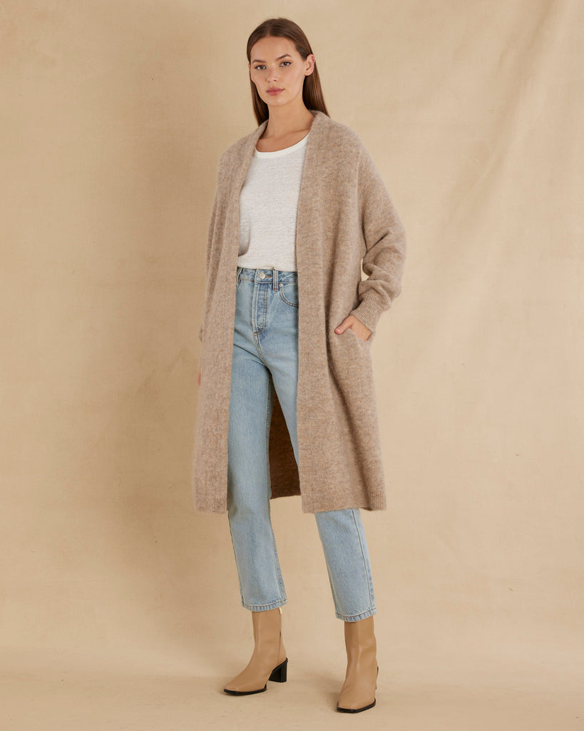 Thea Long Alpaca Cardigan - Husk